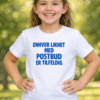 Den livlige gule teksten på den blå T-skjorten med korte ermer fanger oppmerksomheten med én gang. Perfekt til trilletur, barnehage eller på besøk hos bestemor – der melkebeholdningen alltid er på topp.