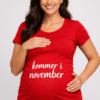 En liten desemberbaby på vei? Denne svarte gravid-t-skjorten med teksten «kommer i desember» sier det høyt og tydelig – med stil. Perfekt til gravidbilder, julekos og den store avsløringen.