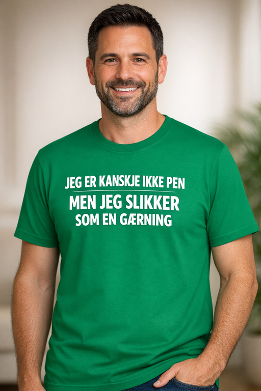 Frekk, selvironisk og umulig å overse – den grønne t-skjorten med hvitt trykk sier det du tenker, så du slipper å forklare deg (altfor mye) på festen, på byen eller på hyttetur.