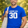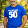 40 og ikonisk: Den blå dame-t-skjorten med hvit tekst LEGENDE VED 40 gjør deg til midtpunktet – perfekt for bilder, latter og en bursdag feiret med stil.