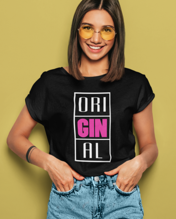 😎 Når du er ORIGINAL, la T-skjorten si det høyt! Den svarte, kortermede T-skjorten med et dristig hvitt og rosa blokkdesign med teksten ORIGINAL gjør det klinkende klart at personligheten din ikke er masseprodusert.